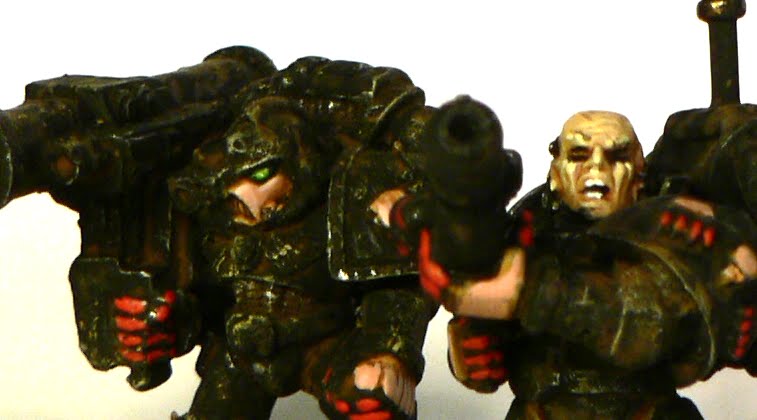 I went for a quick and dirty very weathered theme to fit the fluff. Basicly I just left the black undercoat in place, washes and weathered my way to the finish.