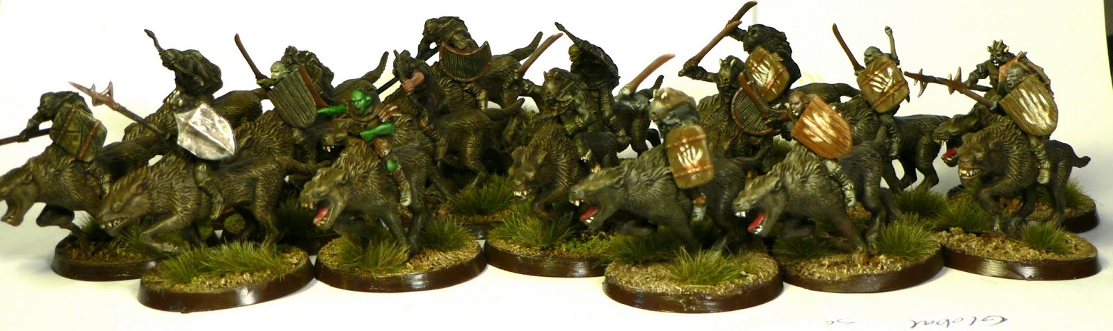 Here is the entire almost painted lot of wargs. Yay! We’re taking the hobbits to Isengard, to Isengard!