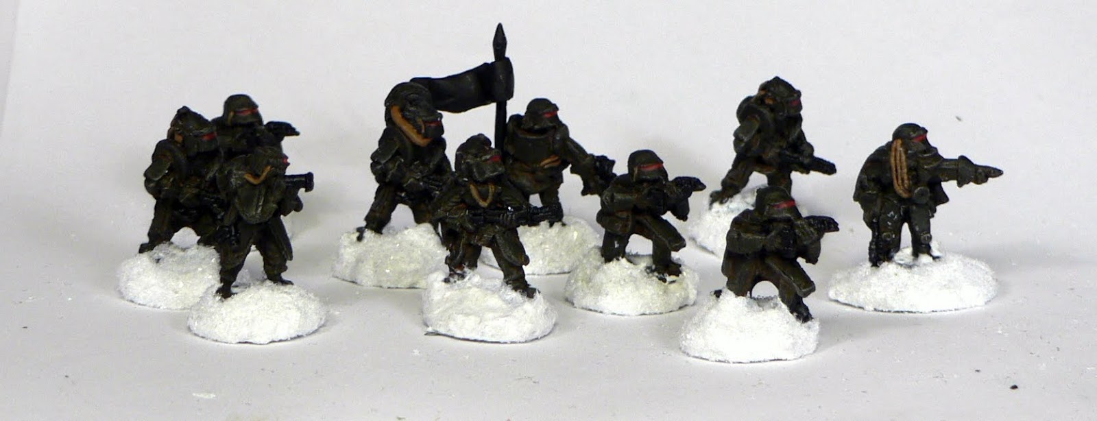 I decided to paint a single squad in a different scheme. They could obviously be used as elites then…
