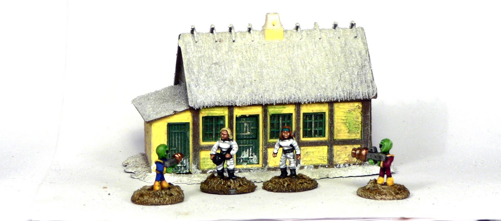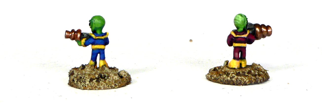 A pair of little gren men seemed to be just what the doctor ordered. I’m going to make 30 in total. The figures were bought years ago (again I know- I’m really working through the pile…) but I only ever painting 10 and they were painted in grey and white. Boring me thinks.