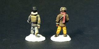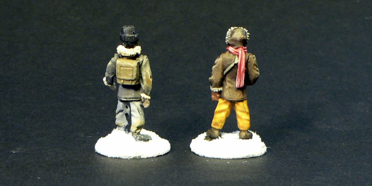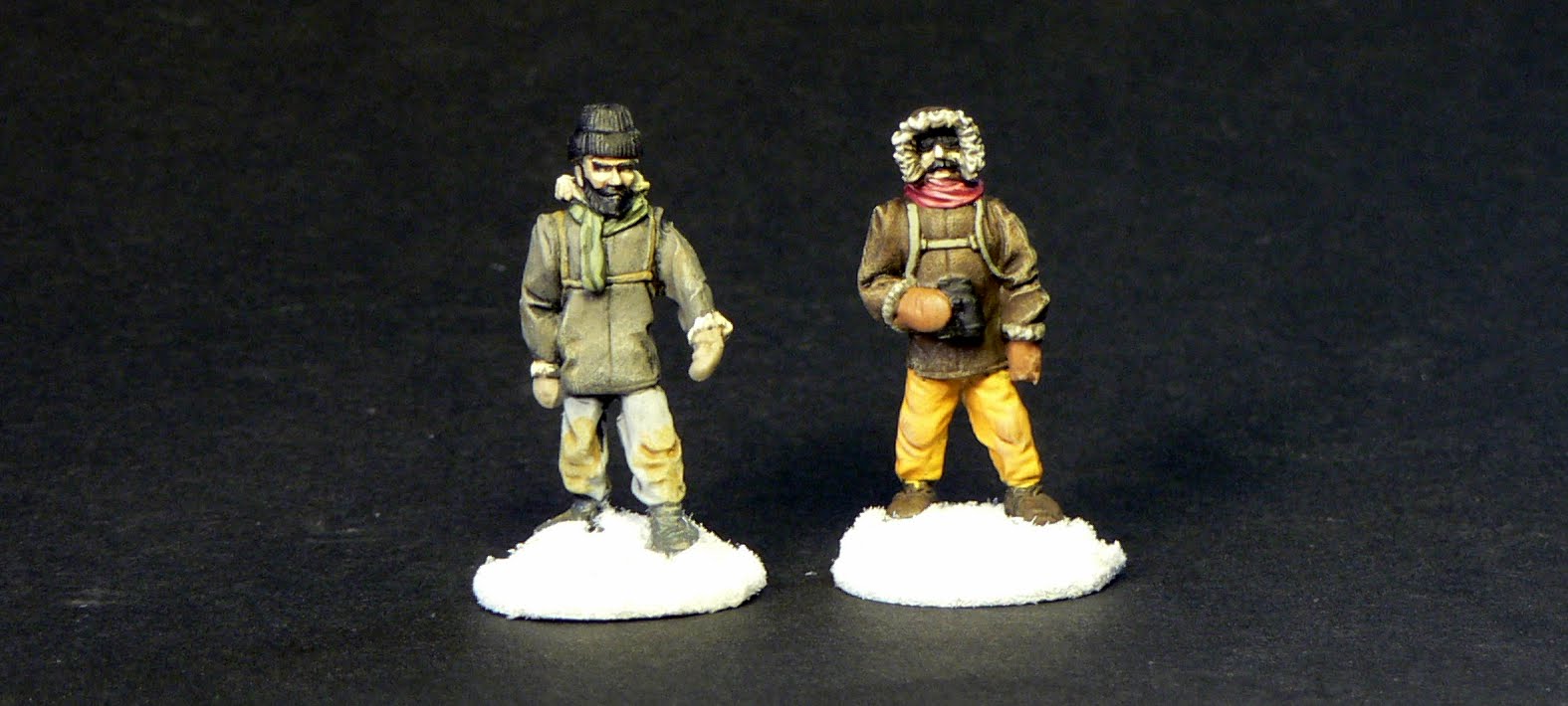 These are nice figures and well painted. About the photography issue. Is there a way you can add depth of colour to the snow? Give it some greys and some blues to break up all that white? Maybe add a small rock or two jutting up from the snow? Then maybe photograph it against an infinity blue background.