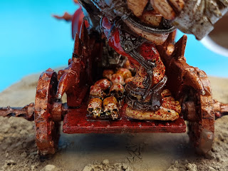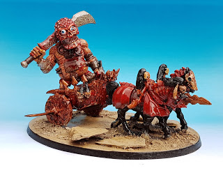 The next installment in my ongoing to quest to make a 2000 pts Age of Sigmar Chaos army is this chariot. Akmett The Terrible is a merciless killing machine that rides out to battle under loud chants of Manowar or the Aqshyan counterpart.