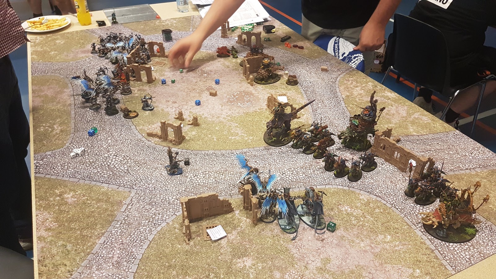 The site at Aroscon was quite different… unpainted armies on flat “2d” terrain… only not terrain but equally sized fields of non-slip mat. Initially I thought it was some kind of joke or in between games set-up, but it turned out simply to be the way it was supposed to look. It don’t understand why they bother with miniatures then….