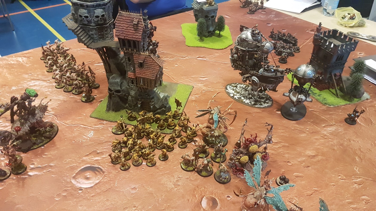 A terrible battle between the Kharadron Overlords and the nefarious servants of Nurgle.