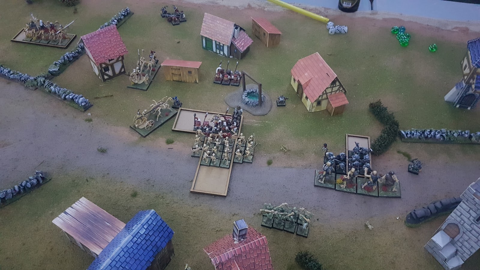 The armies were a bit uneven as the dwarves were very character heavy. The dwarf player was unfamiliar with all of his rules and this probably played against him as much as the undead. He quickly found out how to use the cannon though with was rather devastating.