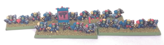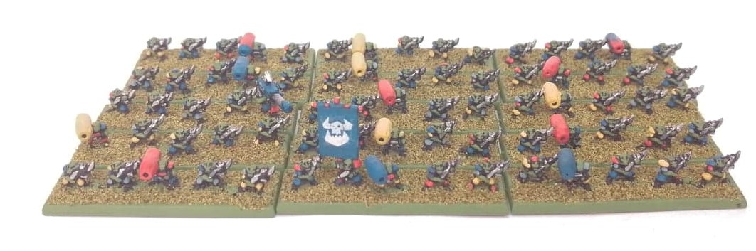 The next installment of my Ork NetEpic Gold army is here. This time I have painted the Death Skull clan. This clan allows me to pick two mobz that normally would require another clan to take. While I don’t really use that in my list, I thought they’d come in handy on many occasions.