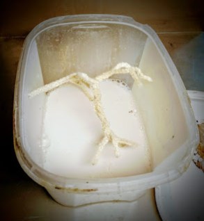 Step 5: dunk the tree in the NMN:water mixture and close the can. Give it a good shaking. This would cause the whole tree to get covered and soak the NMN. Keep some kitchen towel handy as this can get messy.