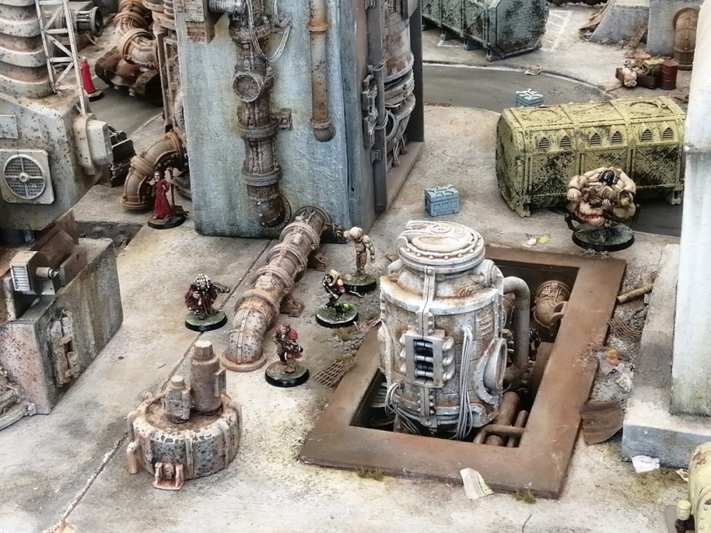 Thomas Riley had been kind enough to make a small but cool scenario for us all. Basically our Inquisitors were called upon, to claim various escaped animals for the masterchef Remee Tredzepi from the reknowned Stroma restaurant. As you may be able to see in the image Jens has really gone mad about the terrain… it is a plethora of rust and decay and suits his Nurgle miniatures very well. I don’t think Jens keeps a log on the internet, but you can find his stuff in the Facebook group “The Inquisitorium – the beating heart of Inq28”. In the game I lost my “Meat Mountain” almost imediately… to the dastardly do no good Jack Radientsky’s chaos guys!