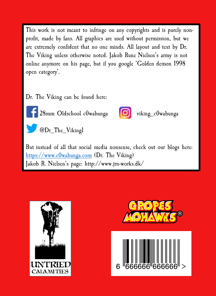 Here is a little snippit I managed to do between my army challenge and battle report craze. The piece is centered on the 1998 Chaos Warriors and the winner of The UK Golden Demon Open Competition in 1998. Without any comparison beyond this, Hans Hansen tries to speed paint a few units to make them look like the GD winning entry. You can choose whether you want the images or the PDF download. Enjoy!