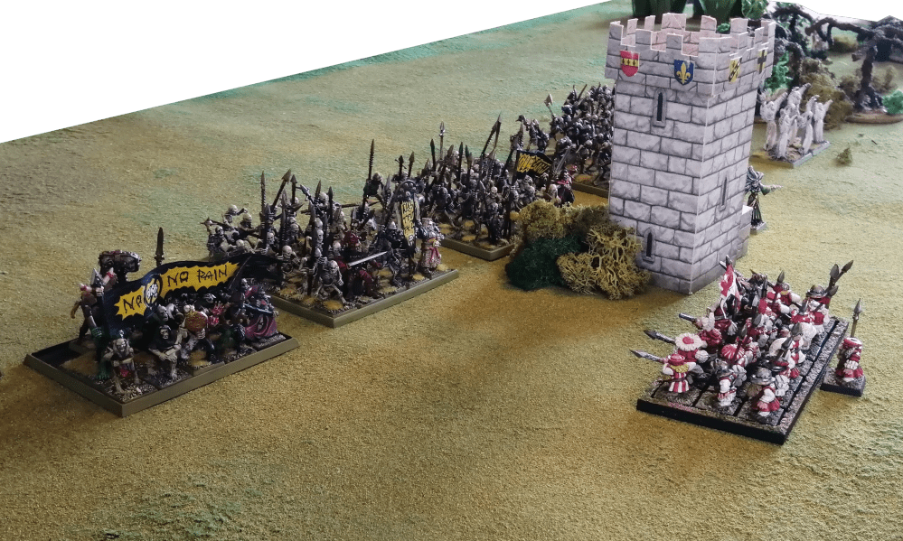 King Gorrin chose to send his forces South West. Here they came upon a ruined city and an old Dwarf tower. It soon turned out that the ruins were littered with the skeletal remains of the dead. Walls of corpses started coming out of the ruins and the first test of King Gorrin ensued. He had to take back the Dwarf tower from the Undead. This would serve as a perfect fortication to assist his further advances.