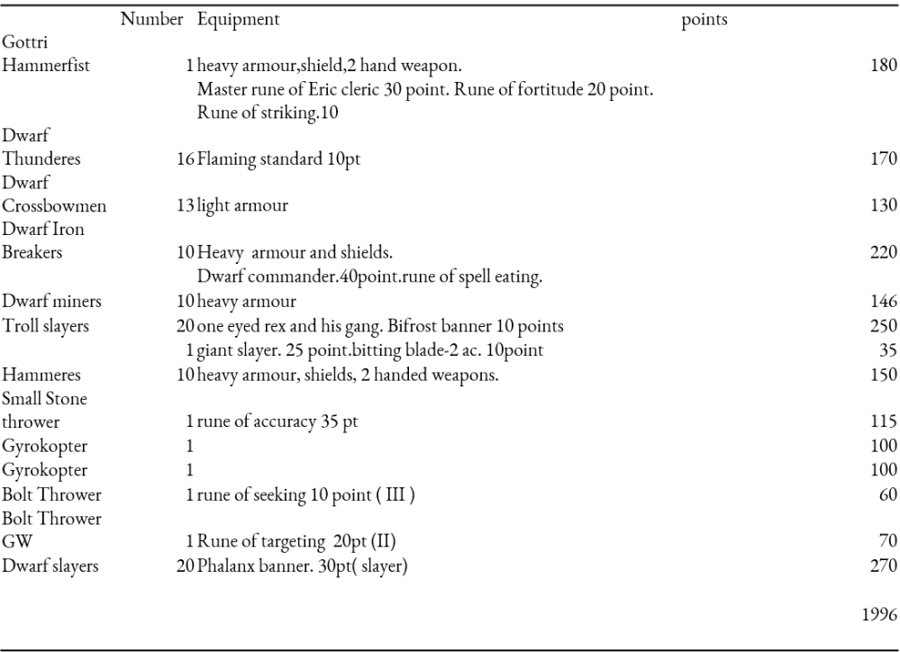 I am playing a narrative campaign with a few Dwarf players (friends) and so far we have had two battles. This is a brief description of the 2nd battle.