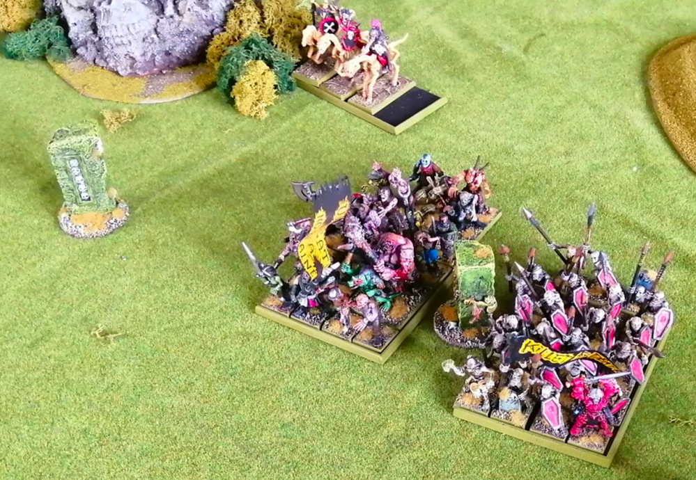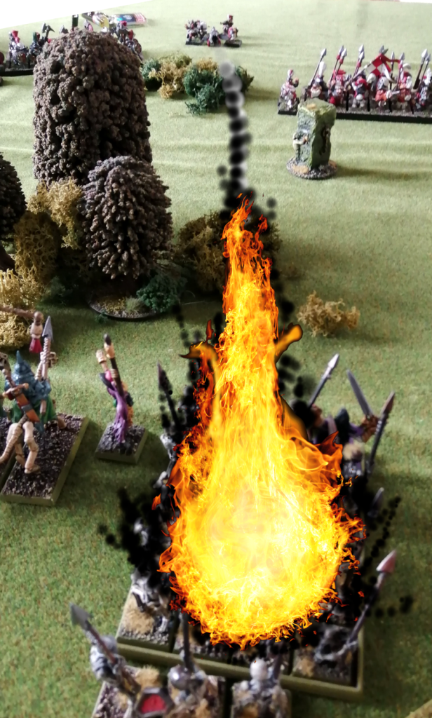 We got to a really awkward combat towards the very end… my regiment pursued the Runelord and caught him, but then it went into two other regiments already fighting. We couldn’t figure out whether it was then joining that fight or would move through it like as if it had hit friendly troops. In this end we did the last. Hindsight is 20/20 and I think it would have made more sense that they got into the fight.