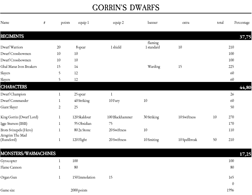 I am playing a narrative campaign with a few Dwarf players (friends) and so far we have had two battles. This is a brief description of the 2nd battle. The campaign is described here (always available from the top menu too): Khardon Island