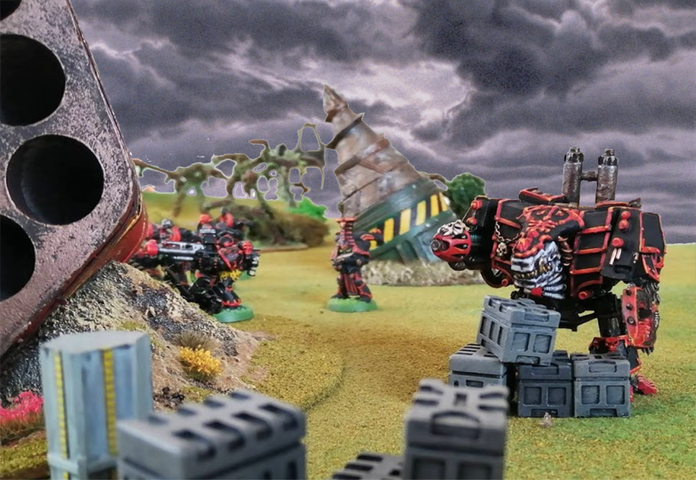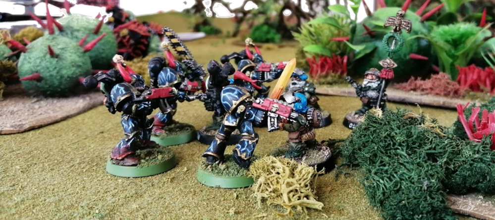 The Blood Angel allied terminators were hunkering down and arguing amongst themselves about who got to stand behind the barrel that they all deemed to be the perfect cover against chaos weapons.