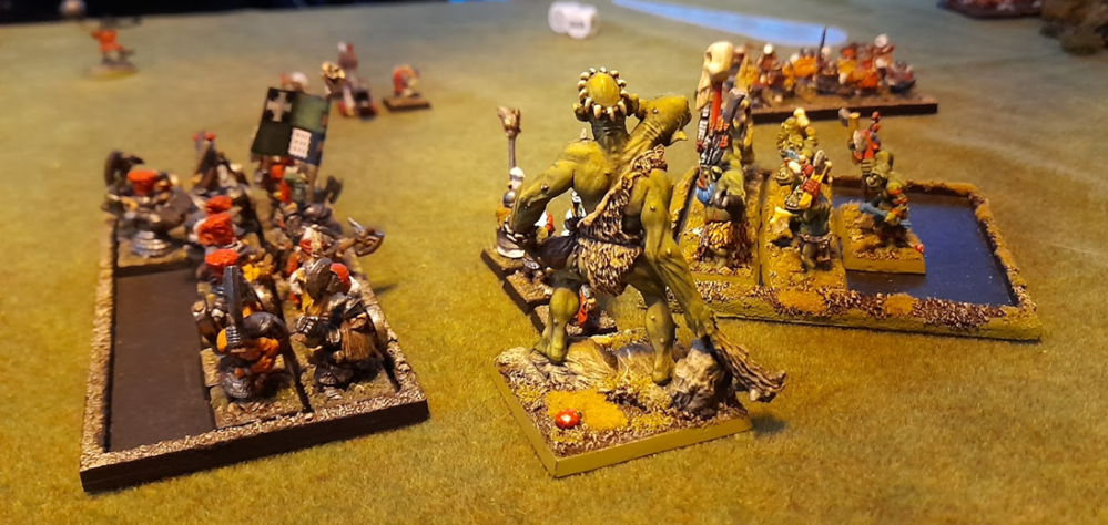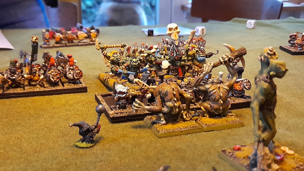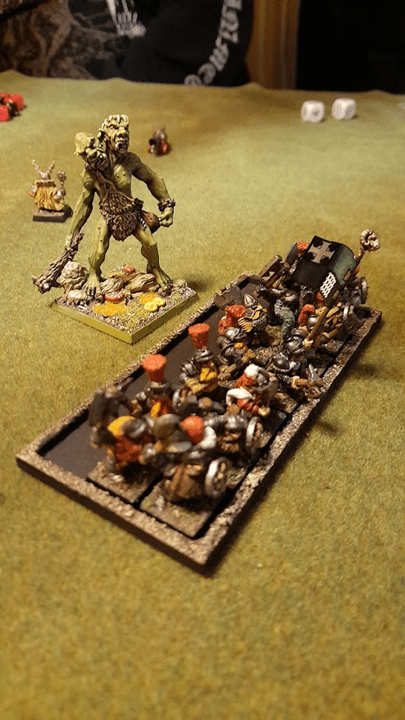 The Orc Warlord eventually came around to fighting, and mauleod the Dwarf Warriors (probably after a direct hit from the Rock Lobba made them an easy target).