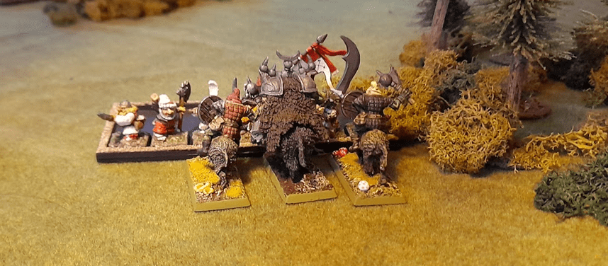 Eventually the Trolls were killed, the Savage Orcs fled, and luckily the Dwarfs didn’t run them down. There were only 3 Hammerers remaining and the Giant charged into them killing them all and overrunning away from the fight.