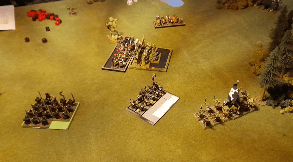 At this point most of the Goblin army was running away… including the Giant who got scared because the Savage Orcs were killed (I think). With nearly everything on the run and a leadership of 6 (the general was far away) I thought the game was over.
