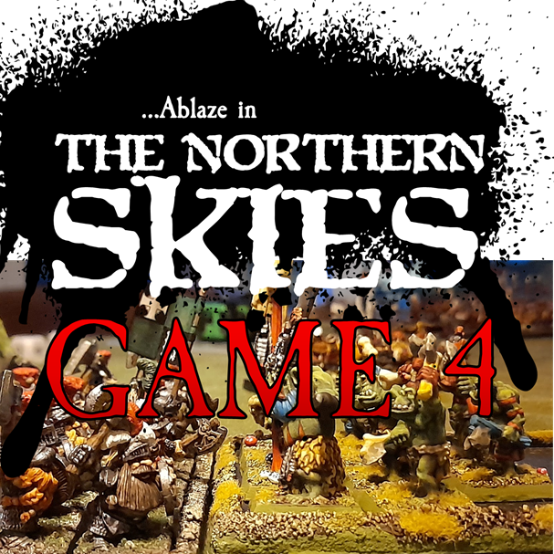 While the Dwarfs were taking a beating, Kaptain Kroog, the notorious Orc pirate, had been en route to steal their ale himself… When the Orcs saw smoke on the horizon and ran in to vanguard Chaos troops they decided to double back like rats fleeing the sinking ship. This forced them into contact with a couple of Norsca border patrols, which was the basis of game three.