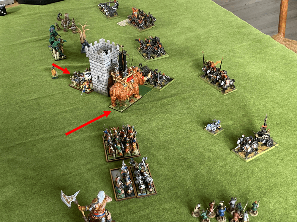 Next turn I charged with everything. The Norse giant was trying to hunt down the Chaos Knights, but I moved them just enough to get them out of line of sight. (not shown).