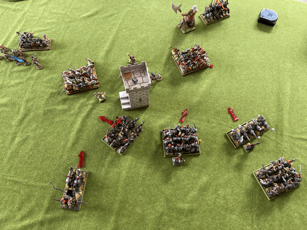 The charge on the other flank was the same story – the Chaos Warriors in combination with the chariot had mauled the Norse Warriors and the whole thing was more or less gone.