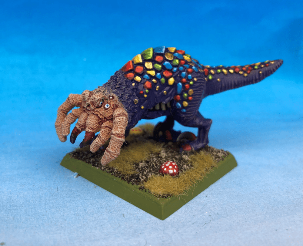 The tivoli/smarties monster was quite a ‘happening as we go’ paintjob… except for purple I didn’t have a clue about where to go with this. In the end I chose to give it rubies, saphires and gold for armour… or smarties as they’ve been dubbed on the 2nd Ed 40k group.