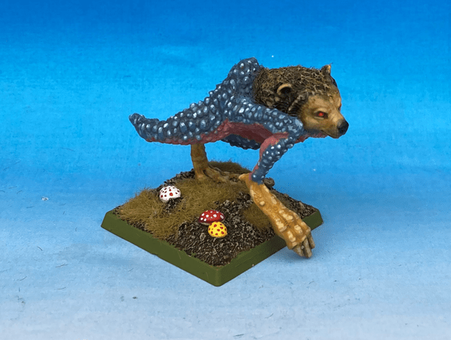 Next, when painting the bear/dinosaur spawn, I noticed that the feet looked a bit like hens feet… or some other bird. I just went with that. The actual bear part ended up looking a bit like a hedgehog perhaps? All in all it will be happy to spawn around.