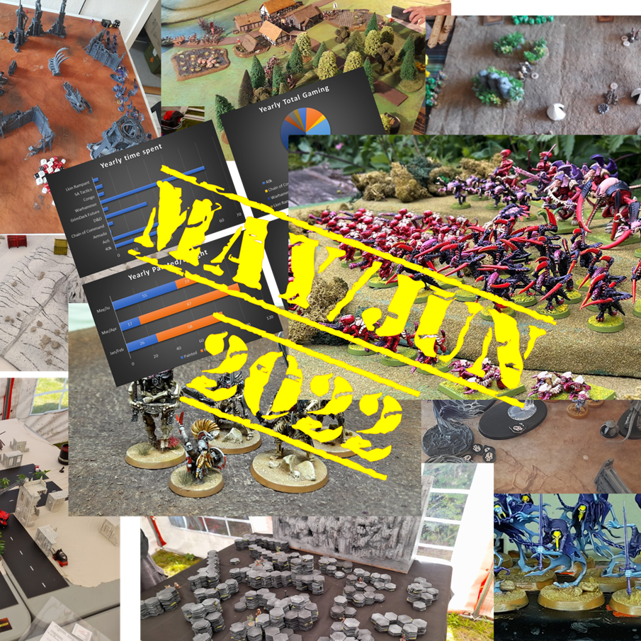 So here we are, another two months in. May and June saw a big house move here, so the hobby activity went down a bit… or so I thought. I actually managed to get in quite a few games anyway and even painted some 60 models too, which for my normal rate is pretty decent.