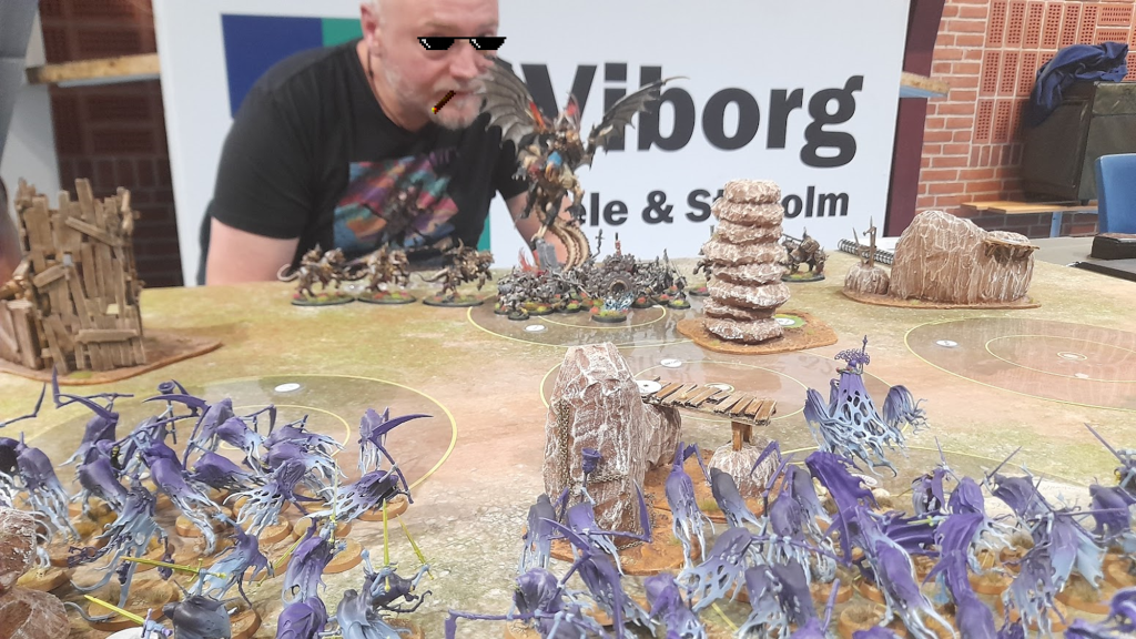 Too cool for school – Søren is obviously trying to hide behind his enormous Archaon model because he fears the repercussions once I realise the rules that it has.