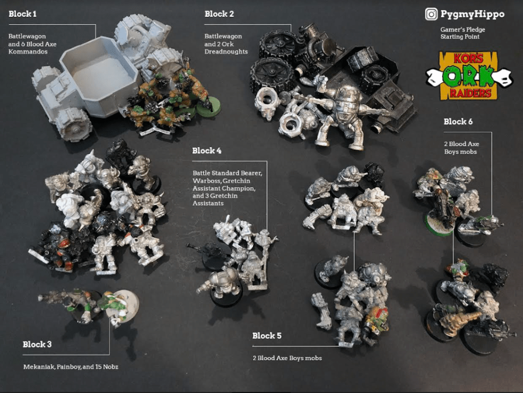 1) Blood Axe Kommando Mob and 1 Battlewagon (Counts as 10 models).