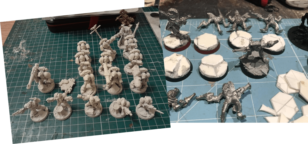Mike Thompson and Lastakodo showed us their progress on Marines and Harlequins respectively. Both have been taking it easy or been busy with real life so far, so only just priming and building. The build up of scenic bases looks very interesting I think. There’s still 10 days to go!