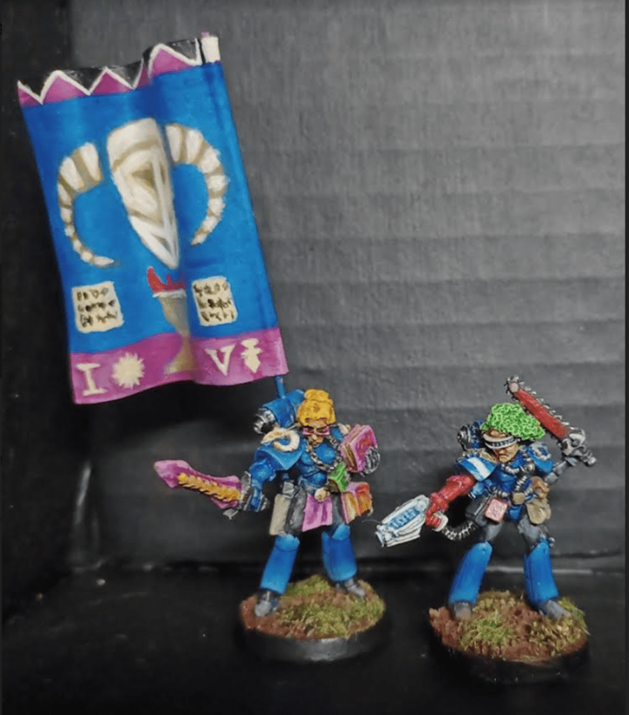 Being the characters I decided to do my back banner challenge, seemed more logical than just on a regular marine. I’m relatively happy with the final result and the various gliphs at the bottom are from a search of random marine banners on the net.