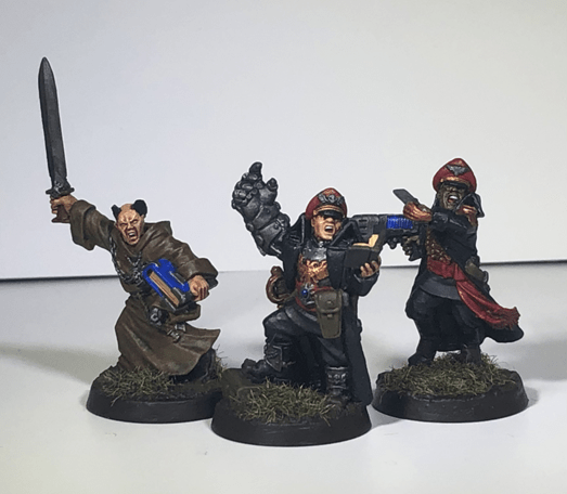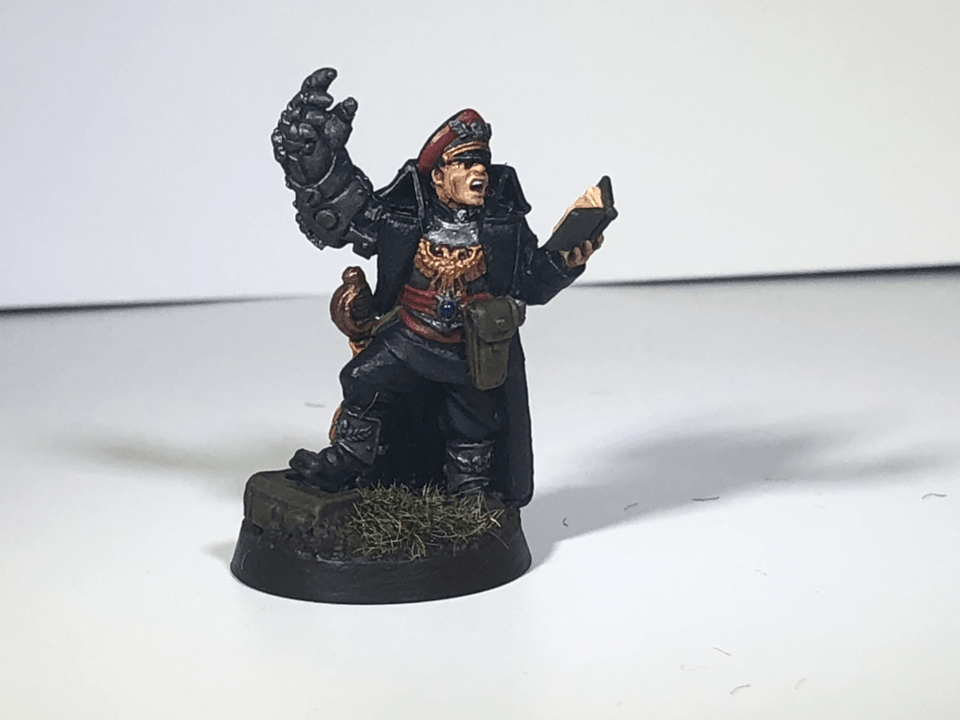 So lacking heavy weapons I changed things up with some characters, no guard army is complete without some stylish commissars, an iconic classic. As I’ve taken to using 2nd edition commissars as officers in my army I’ve elected to use the mid 2000s commissars to avoid repeating the same sculpt in different rolls. Additionally I used the bonus commissar to try out a formula for a dark skin tone, a nod to the lore showing the non-Valhallan aspect of these political officers.