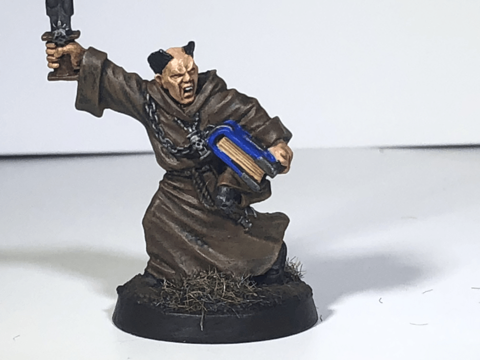 Finally I added a Preacher to even things out. The model was painted like a certain character who constantly strives to purge mythical blue woodland creatures, once I saw the resemblance it was out of my hands. Plus this will allow me to take a certain other unit…