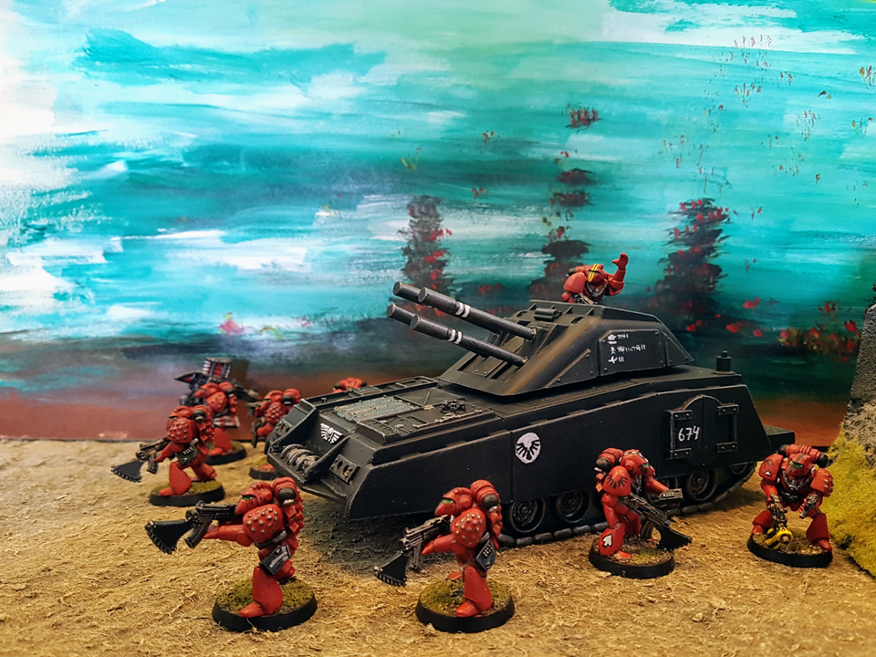 Not only did I manage to convert and paint up the classic GI Joe Armadillo tank for my Blood Angels, I also painted a backdrop (Although a bit crude on both), but I also managed to play a game with my Blood Angels, which totally concludes all my subgoals.