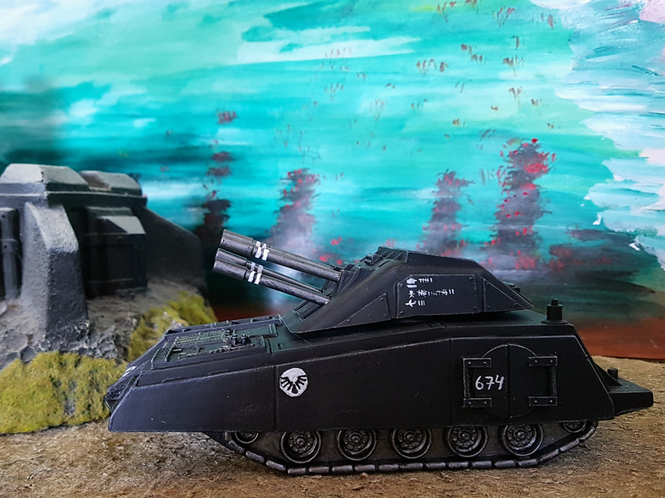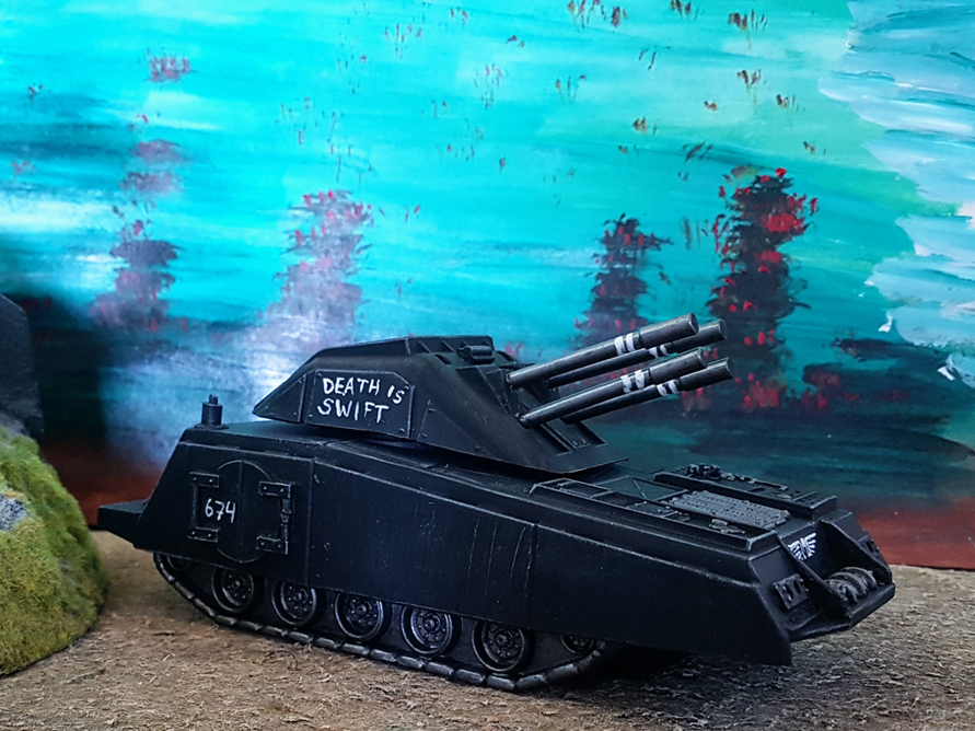 Firstly the Armadillo tank. It is a classic conversion seen in an old White Dwarf magazine and when I was gifted a large chunk of old GI Joe toys and this was in the lot I instantly decided to make my own version and for this challenge it was time to do it. I was inspired by the “original” White Dwarf version in some ways, like painting it mostly black and metal, but then I made some alternative choices too, like keeping the tracks on and not making it a hover tank and also I tilted the gun barrels up to make it more of an anti aircraft or artillery piece. I am quite happy with the result, but I might add more detail later.