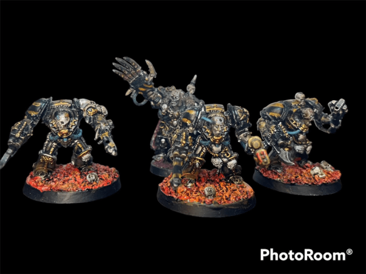 The next unit were 3 Terminators. These are to be the chaos lords bodyguard . Enjoyed these as they were revamped for the project from an old Army back in the day .