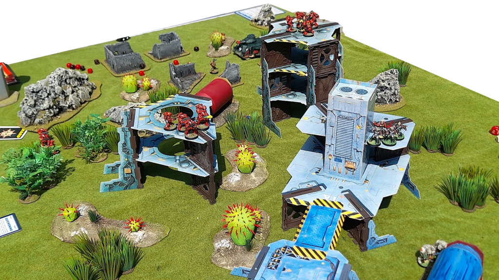 The game giveth and the game taketh. After the speeder crash, the Blood Angels were under heavy fire from the alien cactii. Despite being S3 and quite harmless overall, the cactii still took out at least 3 marines! Deadly!