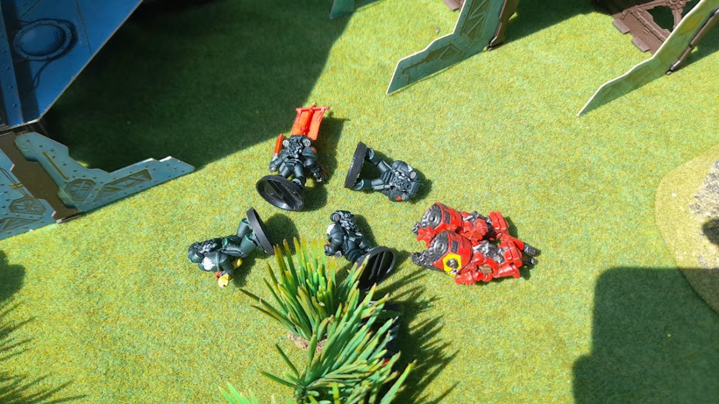 The Terminators took a heavy hit from the speeder, failing armour saves left and right. I really thought the game was going to be over before it had begun. I mean what can you do – you put all your eggs in one basket here… and then it gets shot to pieces!