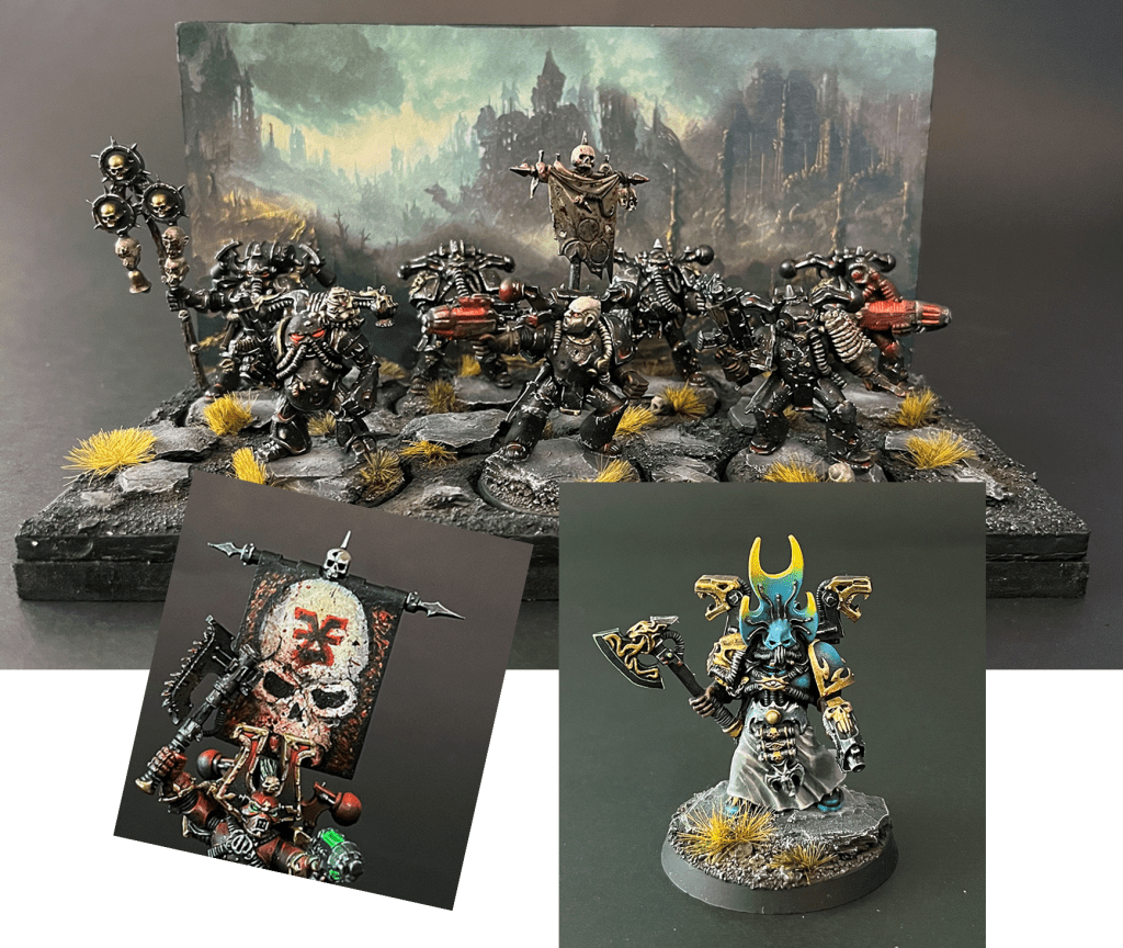 I am sure Mark’s evocative painting, banners and certainly the diorama base for his nurgle squad won people over this month!