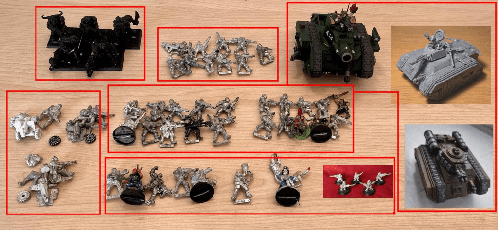 I already had a classic Hellhound that I knew I’d need one day, and thought the 2nd Ed era Leman Russ Demolisher with its insane giant Demolisher Cannon would be an excellent fit, and was a model I’d always wanted to try and do justice to. Several infantry squads, some Ogryns and Ratlings, a Heavy Weapons Squad, and a Command Squad, all seemed like natural choices. Commissar Yarrick is also another classic model from that era that I’ve never painted before. I also have an eclectic mix of 2nd Ed Imperial characters / members of the ecclesiarchy that might creep in as bonuses if I find the time.