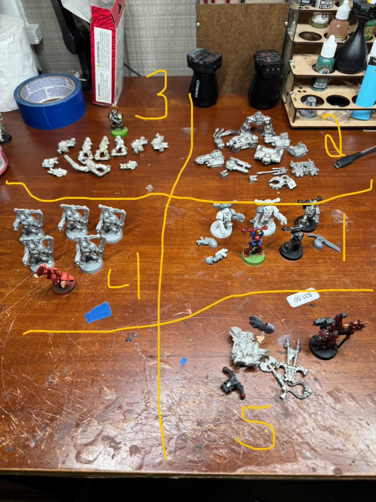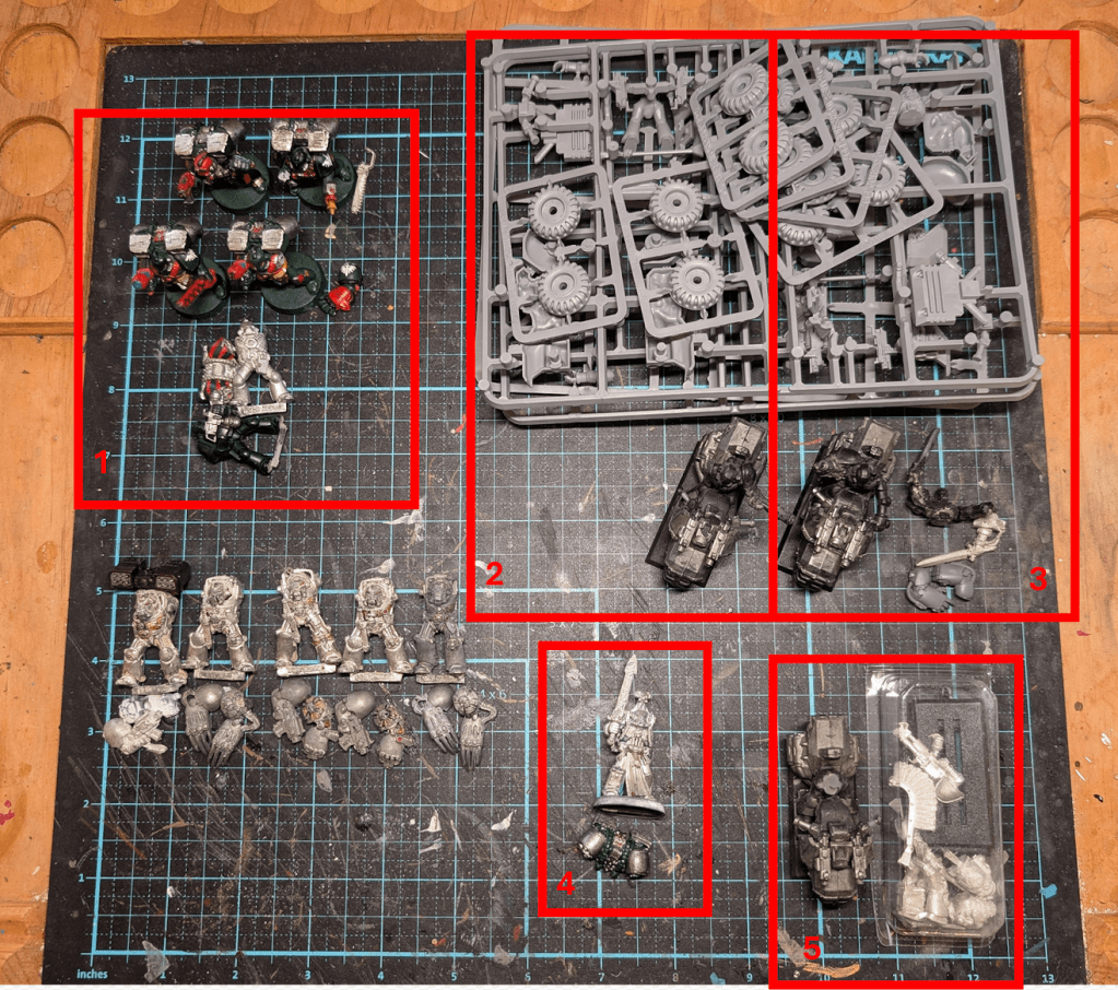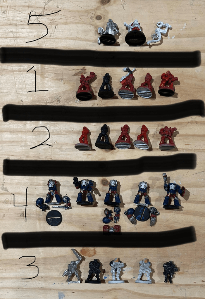 In-game, the Blood Angels provide the close-combat punch my shooting-focused Dark Angels lack. I’m still using original Blood Angels paints from 1991—still functional, still clogging airbrushes—and will include light kitbashing.