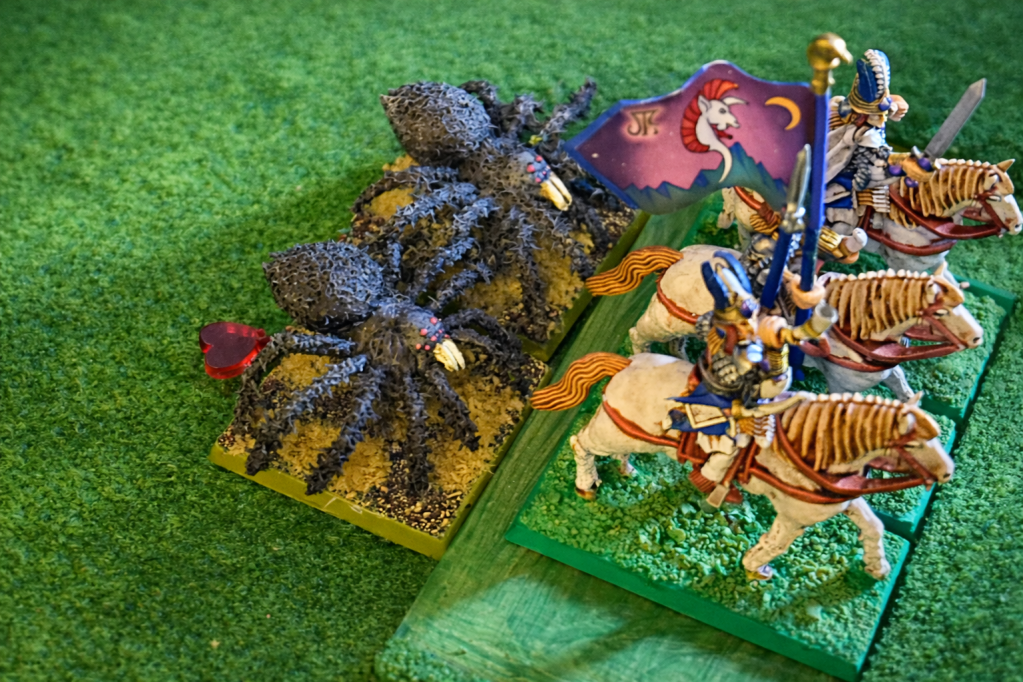 As the game unfolded, the spiders began to dominate the table. Spider Swarms crawled across the field and overwhelmed a bolt thrower in a frenzy of limbs and fangs. The Reavers who had enjoyed their early success were later hunted down from behind by Monstrous Spiders, their vaunted mobility undone by creatures that could see and strike in every direction. A chariot that had smashed through Goblin spearmen soon suffered the same fate, caught and destroyed once the spiders finished feeding.