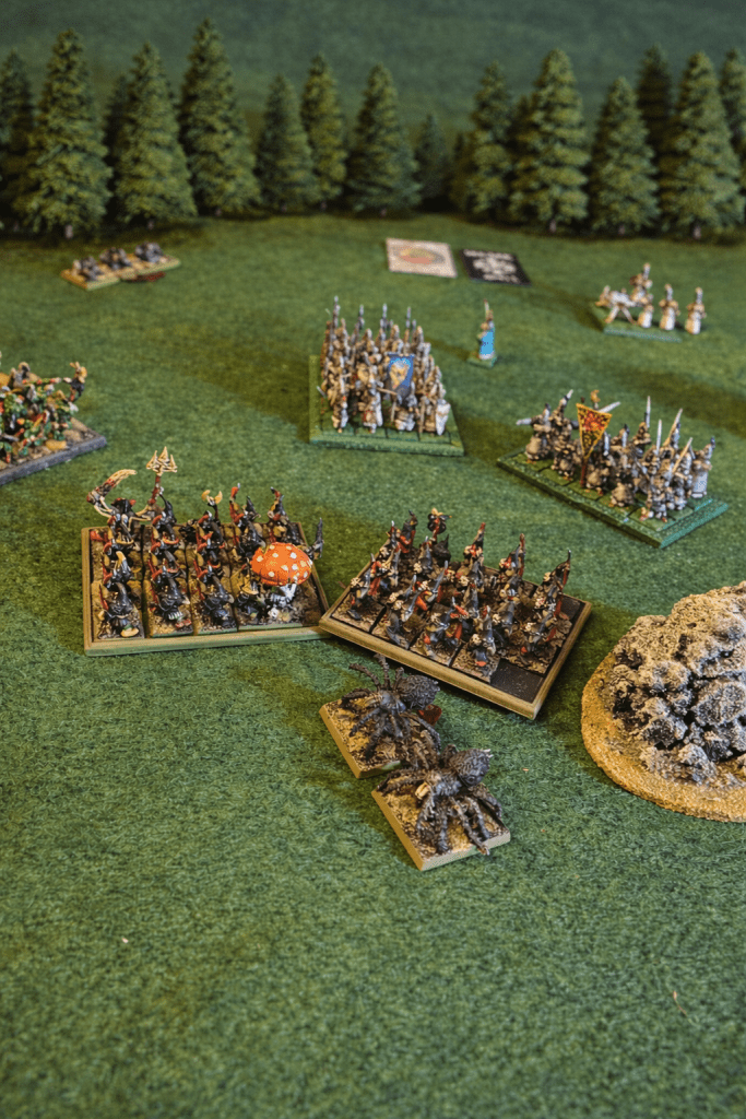 The Goblins won the first move and immediately demonstrated why leadership is more a suggestion than a rule. Units squabbled, Trolls stared blankly into the distance, and parts of the line simply refused to move. Spider Riders surged ahead without orders, while the rest of the army pushed forward as fast as it could. Magic achieved nothing, but the battlefield closed rapidly.