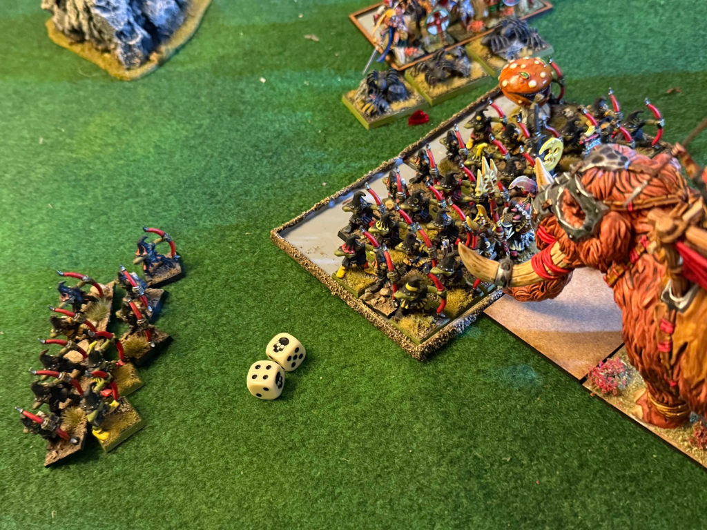 Throughout the engagement, Night Goblin magic ensured the Norse general remained largely absent from decisive moments. The shield maiden attempted to reassert control, advanced with determination, and was promptly killed by an ’Ead Butt.