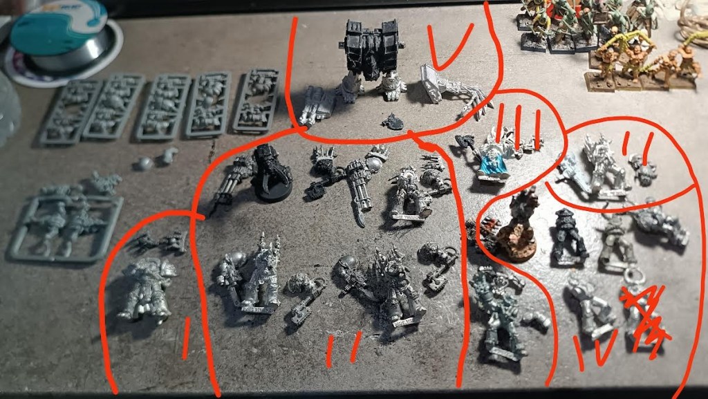 I have split the initial 1,000pt list into the following slices, which will be painted in no particular order:
