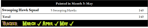 And yet another month finished in a rush! I took it too easy in the first days thinking I had time but these Swooping Hawks proved more complex to paint than expected. I’m not entirely satisfied by how the armour looks since I wanted it to replicate the look of the Eldar Codex. Mine leans more towards blue than grey. But overall they are decent enough! I am now at peace with the idea that this Eldar army will not be up to my expectations in terms of painting level. But it is my first big project after a 7 years break and they remain an acceptable warm up. (ed. I think you are acing it mate! It looks bloody good!) Also, I’m learning a lot in the process which is probably the third most important thing in that Challenge. The first one being to meet a bunch of great people sharing the same enthousiasm for the 2nd ed of 40k. And the second being to end up with a painted army within 6 months. Oh, gems count : +155 ! XD