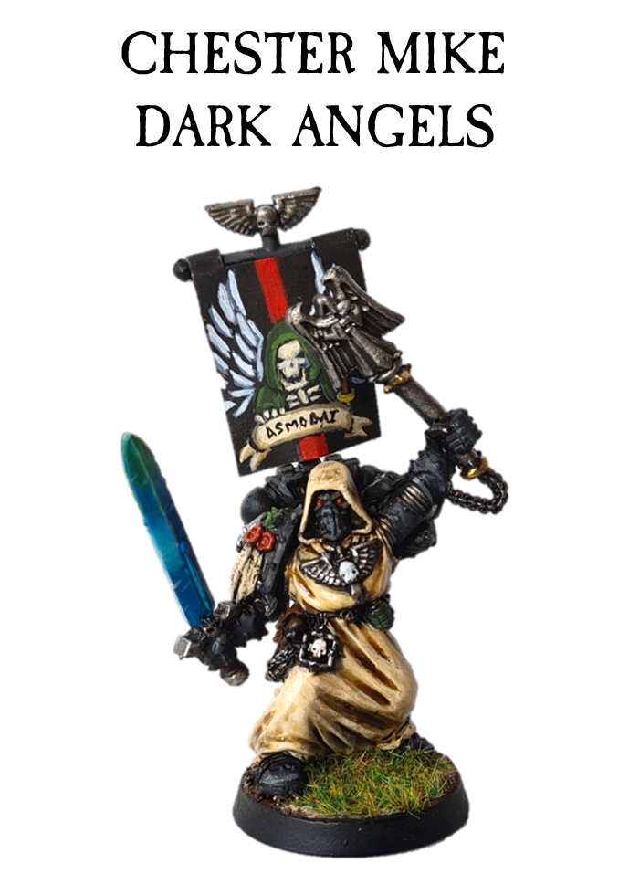 This month’s entry is Interrogator Chaplain Asmodai… Still nicely avoiding Dark Angels Green! Last month, I painted 340 points from my list plus a couple of bonus models so I figure I’m alright to drop below the 200 points this time or I run the risk of running out of models before the end of the challenge (ed. OK then… can’t have you running out of models – we know what happens then!)… those 2nd edition squads sure are expensive! Painting the robes was a nice change to the bare black power armour of last month’s Ravenwing and it was a good chance to practise blending and glazing; two techniques I’ve really been trying to improve. I was initially really happy with how this turned out but then… horror! I’d missed a mould line on the hood and had to file it off and repaint that section. It looks a bit messy on the photo too which is a shame. The power sword was also painted in a new way for me as I tried to emulate the energy glow you see on a lot of modern painter’s work. I have the theory down but the execution needs a bit more work…. more blending and glazing practise required! However, I’m happy I gave this a try and have done it again on other models since with better results. Finally, I added a banner made from a tomato purée tube (ed. good thing you didn’t make it from the purée!) which I’ve hand painted. I only started making banners this way in the last month so please don’t judge my appalling free-hand too harshly! I’d like to take this opportunity to publicly thank the members of the chat for the encouragement with painting banners by hand. So, looking ahead to month three I will be looking to paint my Deathwing Captain and make a start on the Terminator squad. (ed. this looks splendid, so I am looking forward too!)