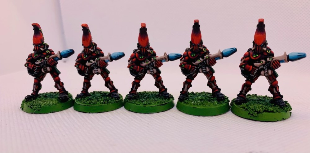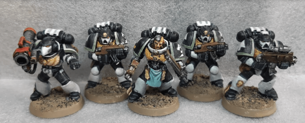 They are a basic tactical combat squad of the 4th company. (The company colour changed late in the piece – I am quite happy with the green). I chose this as a first slice just to allow me a chance of finishing. I don’t know if I could do marines without several standard tactical squads – feels like the heart and soul of the army.