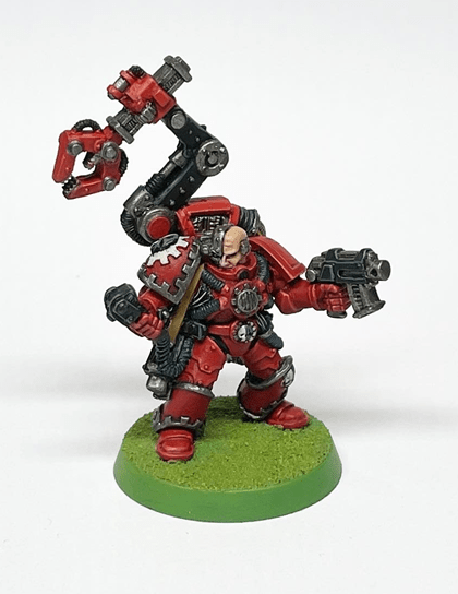 The techmarine model was chosen and painted to match the model of the codex. Ive got as close as I can but taking the photos i realise ive missed out the screen details on his scanner, so i will get those painted in when i can.