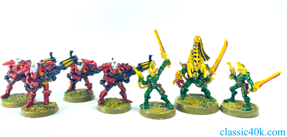 For the most 1990s month of all, the Red Circus Round, I painted some classic Warp Spiders–the most classic red models of all eldarkind! This was special for me as a vision of an ‘Eavy Metal style Warp Spider in the Citadel Collecting Guide in 1997 convinced my young mind to switch from fantasy battle to 40K, it was love at first sight. I think I did justice to the classic scheme.